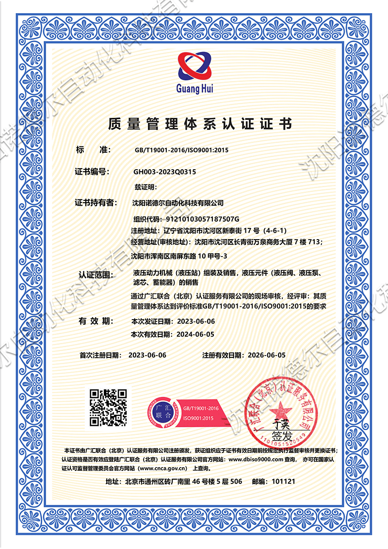 證書持有者:沈陽諾德爾自動化科技有限公司